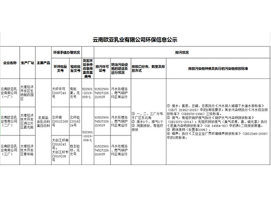 云南歐亞乳業(yè)有限公司(三廠)信息公開